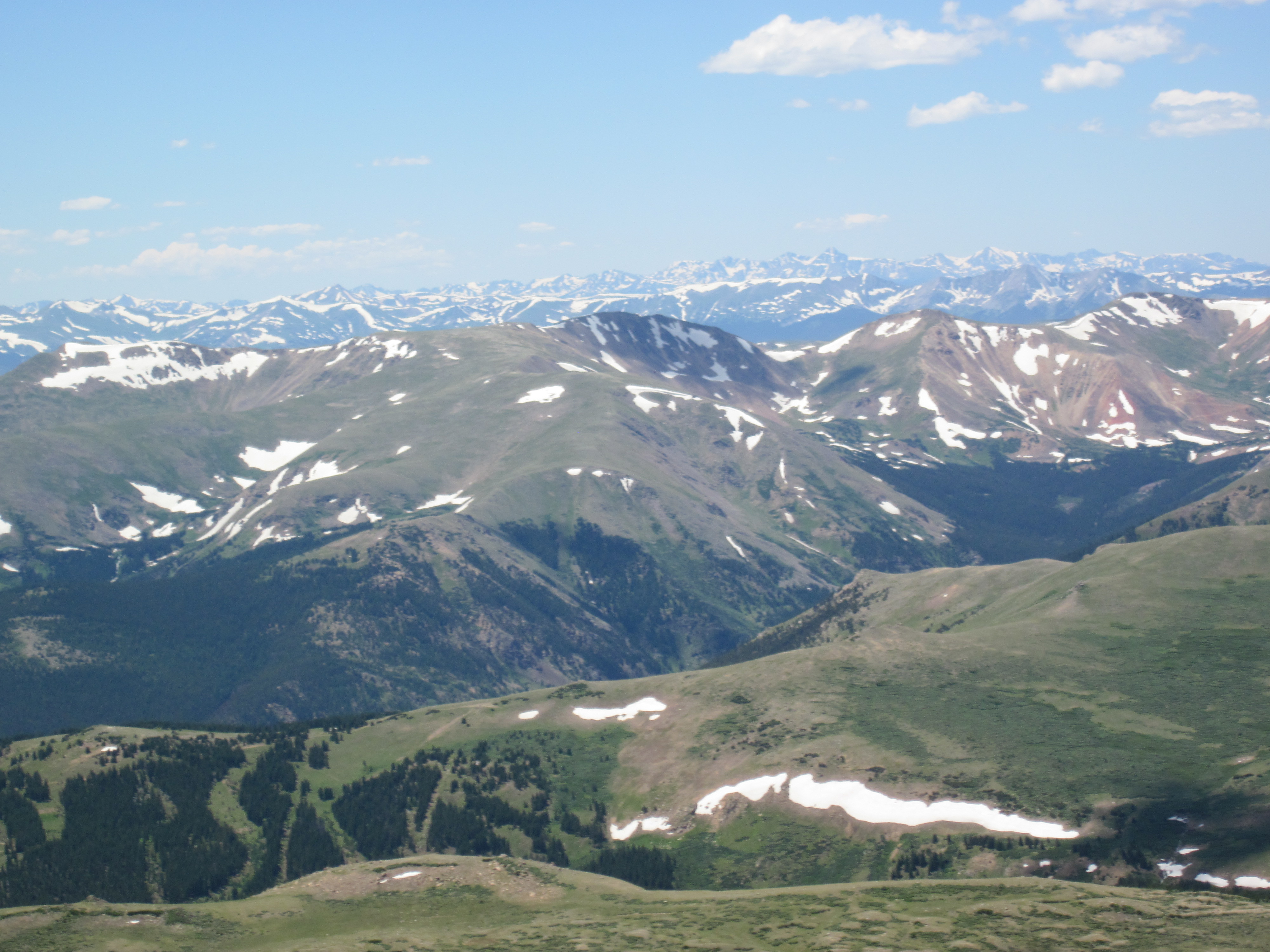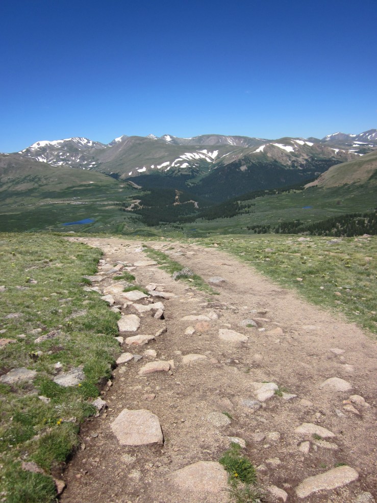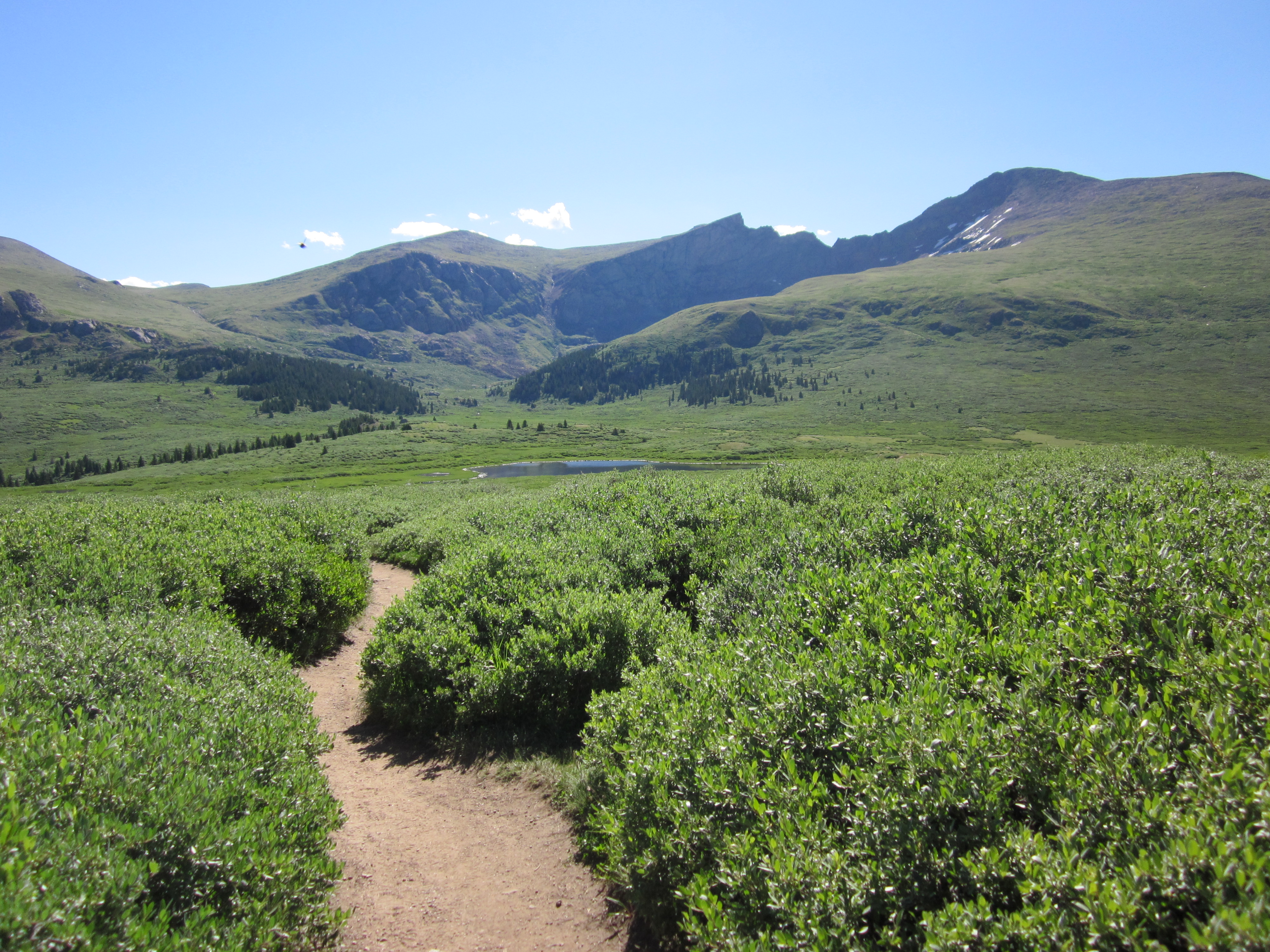Mt. Bierstadt is on the right. The sawtooth is in the middle – you can see it’s jagged edges – and it will take you to Mt. Evans (not pictured)
