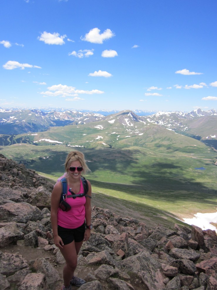 The hardest part of the hike was the final 30 minutes. In order to actually summit the mountain you have to scramble up the rocks at the top of Mt. Bierstadt. This involves using your hands and feet and taking pretty good sized steps up the big rocks. But once you reach the top, you will be so satisfied. I promise, it’s worth it. The view from the top isn’t totally different from the view on the way up but still – there is an amazing sense of accomplishment once you reach the summit.