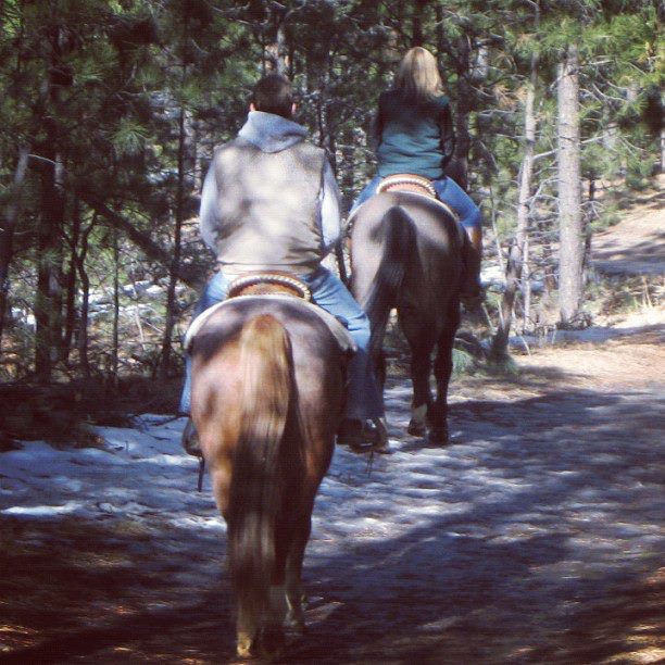 Over the weekend Andrew and I went horseback riding with his parents. The weather was warm, the snow was melting and we had a great time!I love to ride and it had been years since I’d been able to. What a treat! We had so much fun.