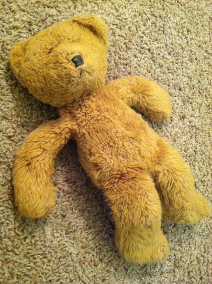 When I was 14 my dad gave me the cutest stuffed bear for Valentine’s. Copper would later tear a hole in the foot. And my grandma would eventually sew it back together for me. Here is said bear several years later: