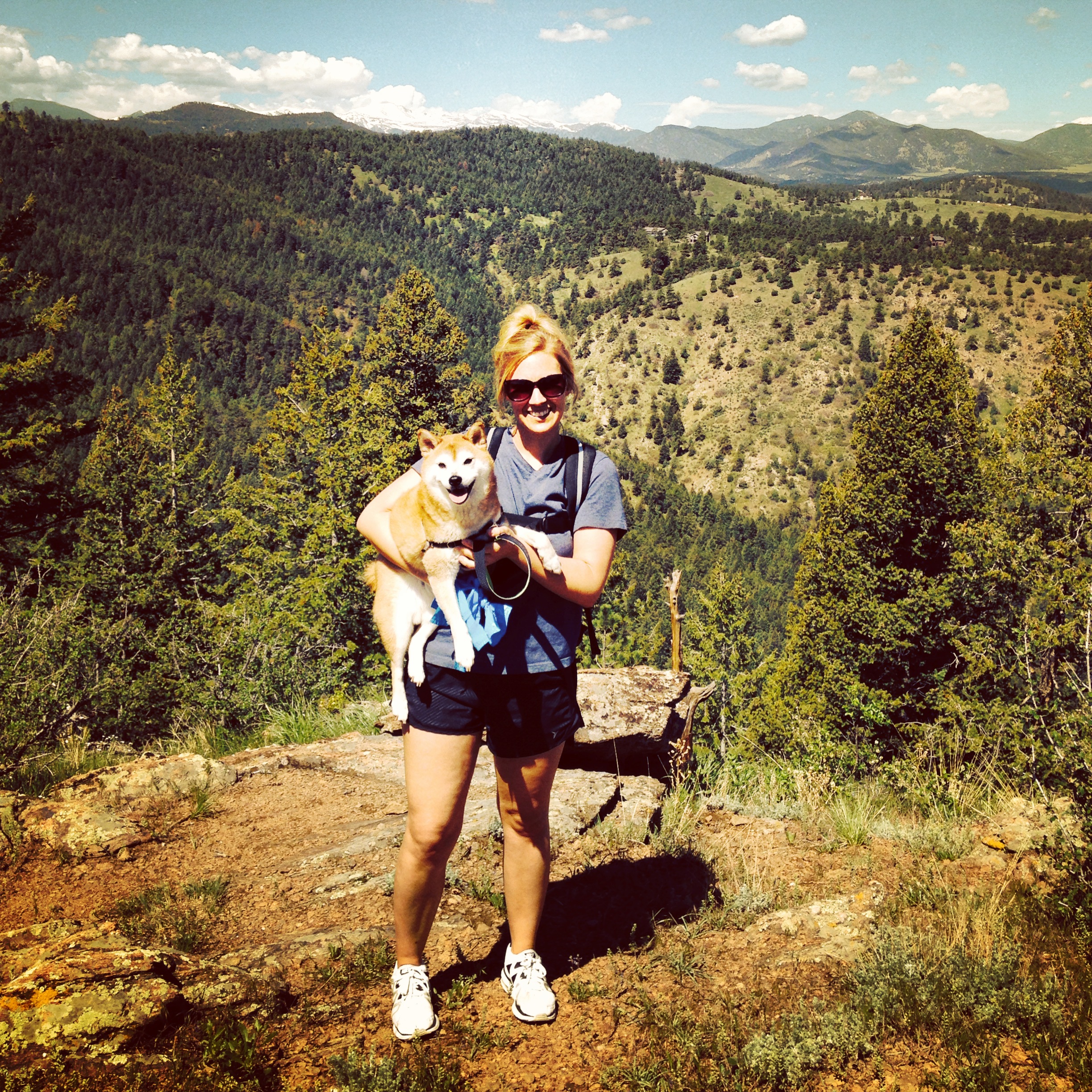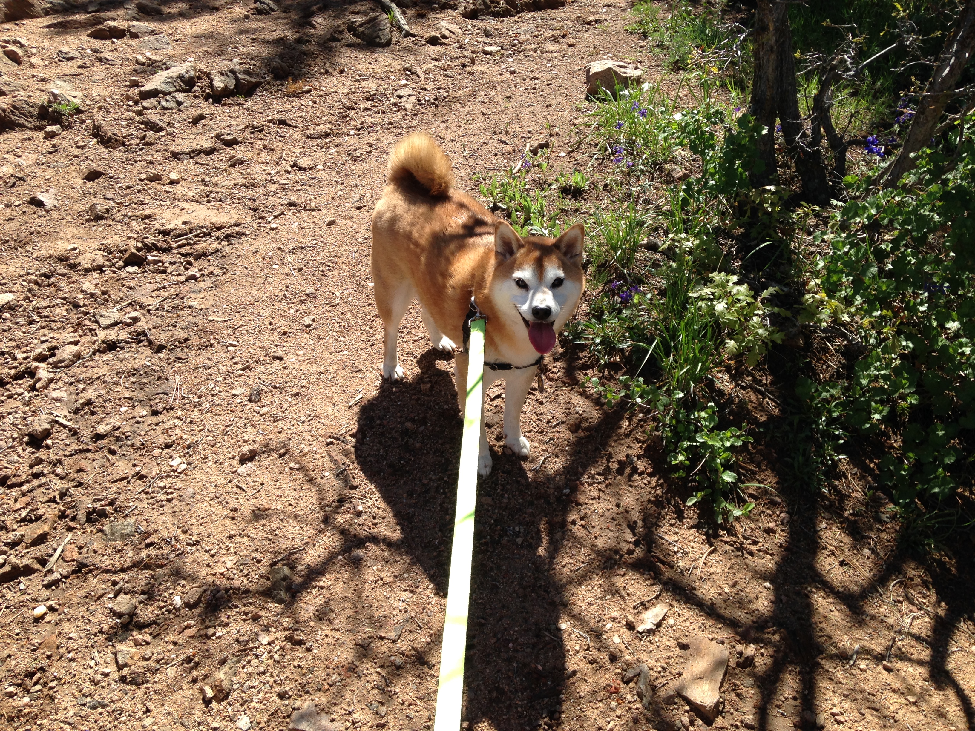 We headed up to the foothills today and hiked around Mount Falcon park for a few miles. It was a gorgeous day to end the month of May. Mount Falcon Park is in Morrison, just a few miles off of 285 & the Indian Hills exit. It’s a great hike for dogs, it’s gorgeous and it’s relatively easy depending on which trails you choose. We took Castle Trail past the old house ruins and then continued up until Walker’s Dream trail. Then we went back down Walkers Dream and Castle and took a left to head up Meadow Trail. We ended up taking Meadow trail all the way around back to the parking lot. It’s gorgeous up there. Various sites along the trails included amazing views of downtown, Red Rocks & Mount Evans.