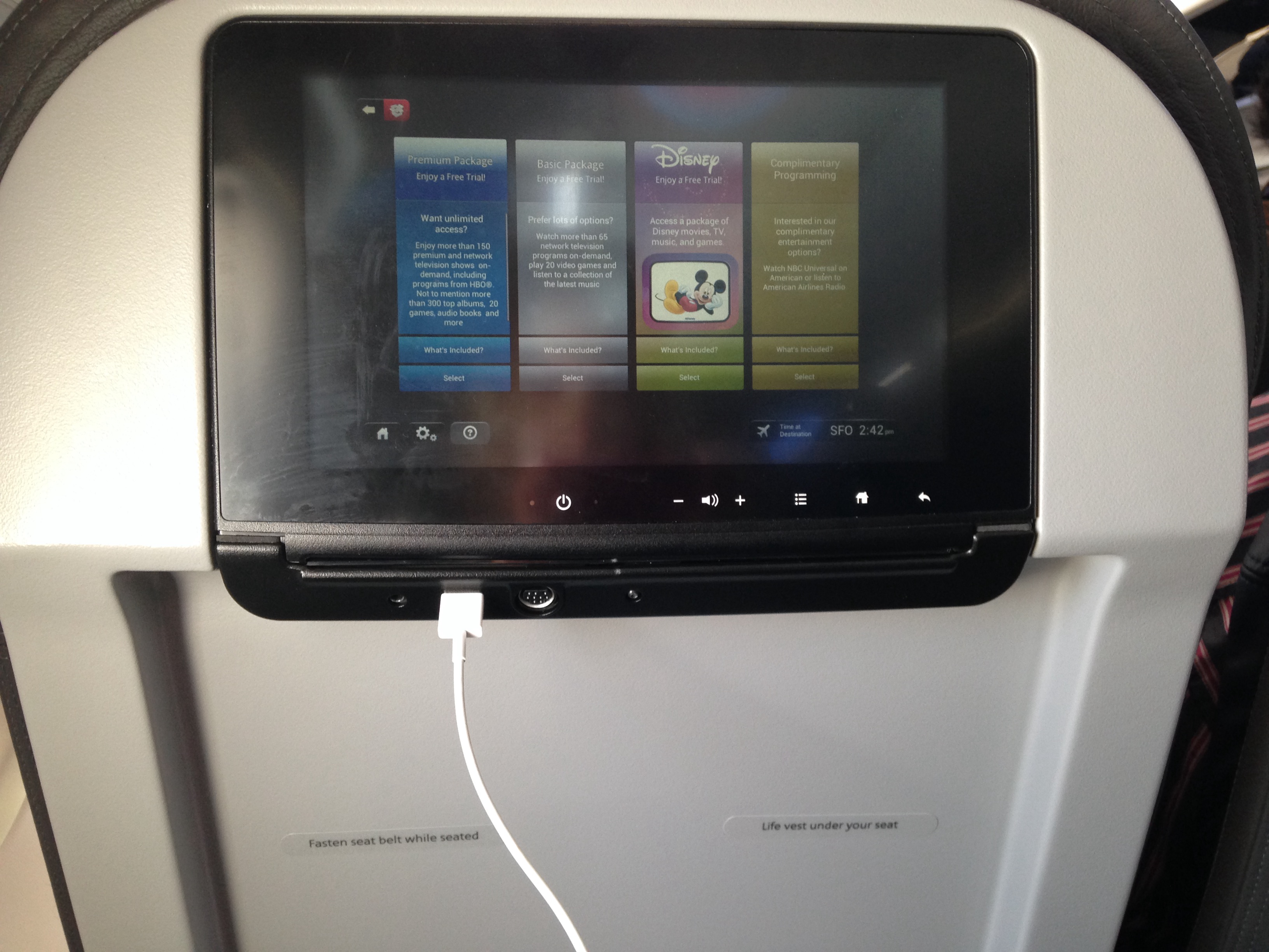 The plane I flew from LA to San Francisco was new. Check it out – a USB port to charge my iPhone! I was also able to watch on Episode of Glee. For free.