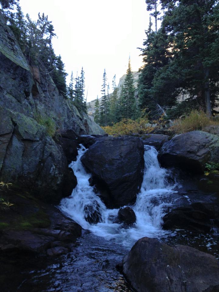 To note: This hike is in Rocky Mountain National Park. It is NOT dog friendly because dogs aren’t allowed on the trails in RMNP. The entry fee to RMNP is $20, unless you have a season pass ($40) or you arrive before 8am or after 5pm (entry is free during these times!). It’s long – 9.0 miles round trip – but easy to moderate with one section of scrambling up a waterfall to reach sky pond. You travel through an aspen forest, get to see tons of waterfalls, pass by two lakes on the way to Sky Pond, get to scramble up the side of a waterfall, have beautiful views of RMNP and if you start early enough you can avoid most of the crowds on the way up.