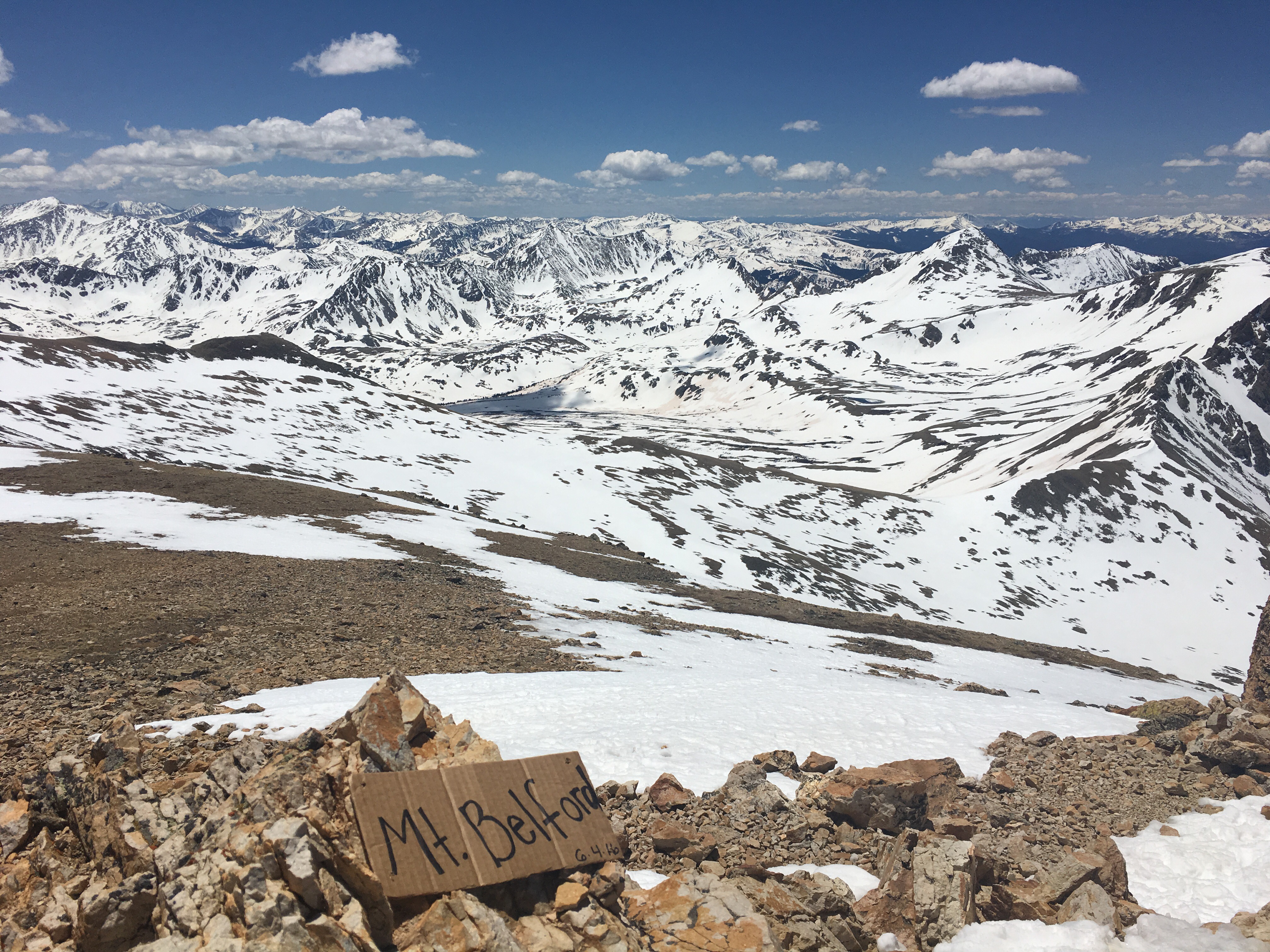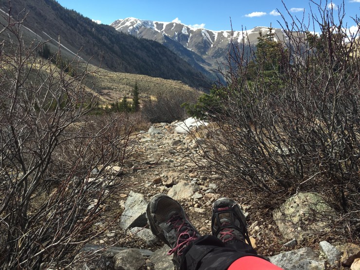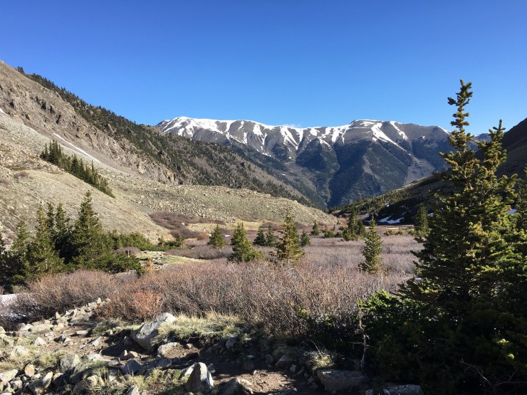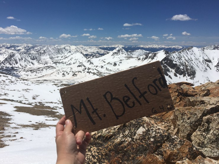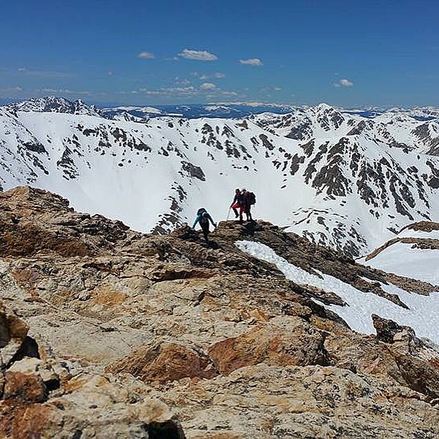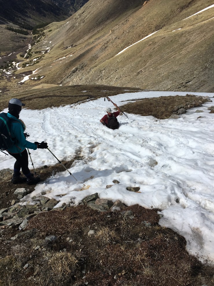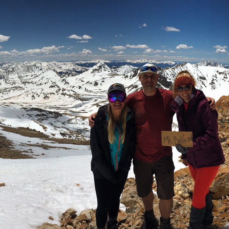 On Saturday three of us climbed another 14er – Mt. Belford. 8 miles round trip, 4,500 gain & several long hours of hiking up and down steep terrain and battling slick snowy spots on the side of the mountain.