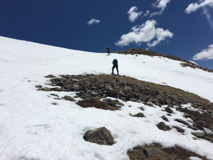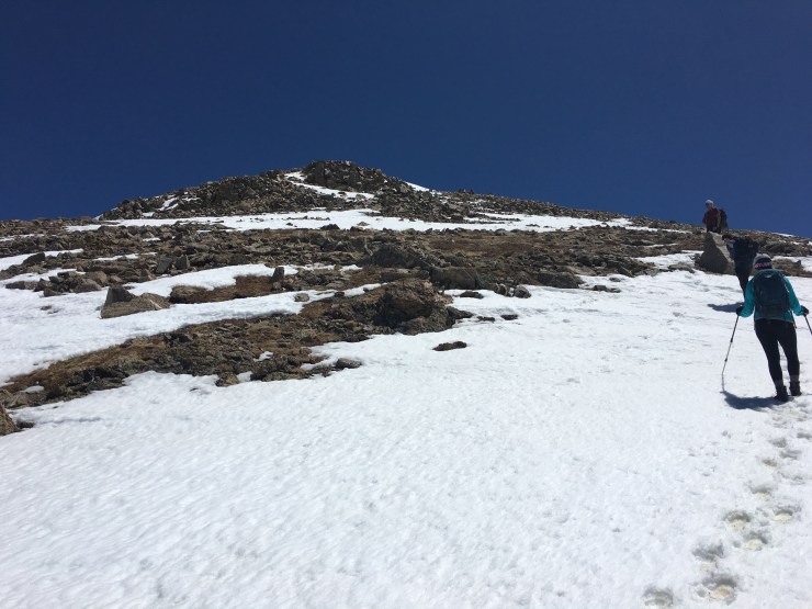 This one was a huge mental battle for me after freaking out on Huron the week before (see previous post) and I feel so thankful to have had Amy and Josh with me to help me literally place one foot in front of the other, face my fears of exposure and snow on slopes and continue up (and down) the mountain.