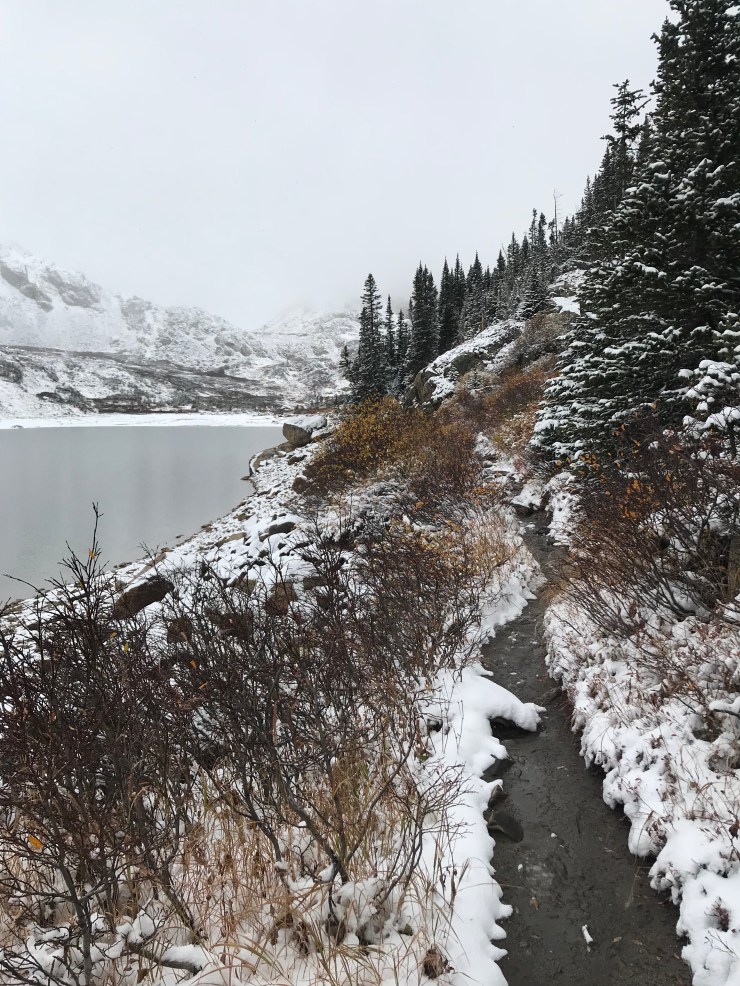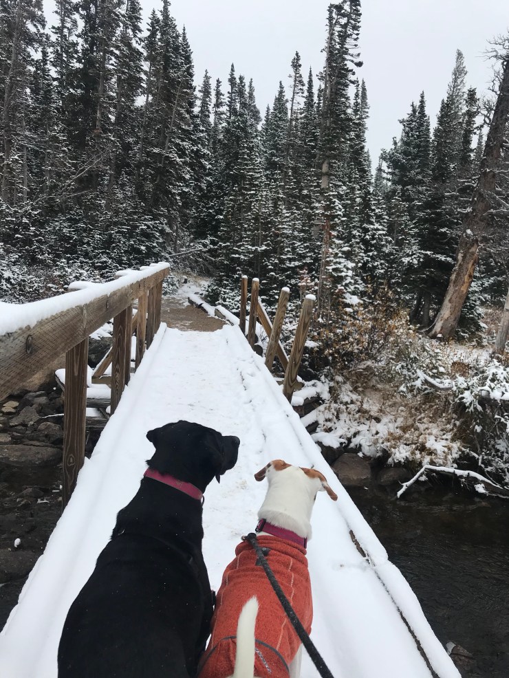 As always, I remind myself to embrace the change, to be thankful I have someone who enjoys getting outside in ANY weather with me, and to remember that colder weather, snow & changing seasons also means one, huge, detail in the life of a Coloradan—– LESS CROWDED TRAILS 🎉