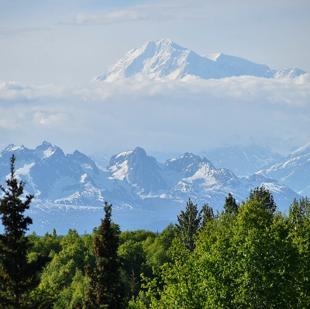 On Wednesday we did about 6 miles on a mountain near our house. The trailhead is 10 minutes away. Another few miles of hiking from there and you have these views 🙂Zainey on Wednesday’s hike! She’s loving her new life. Grass, backyard, space!Last weekend we went to Talkeetna and had THIS amazing view of Denali (formerly known as Mount McKinley).