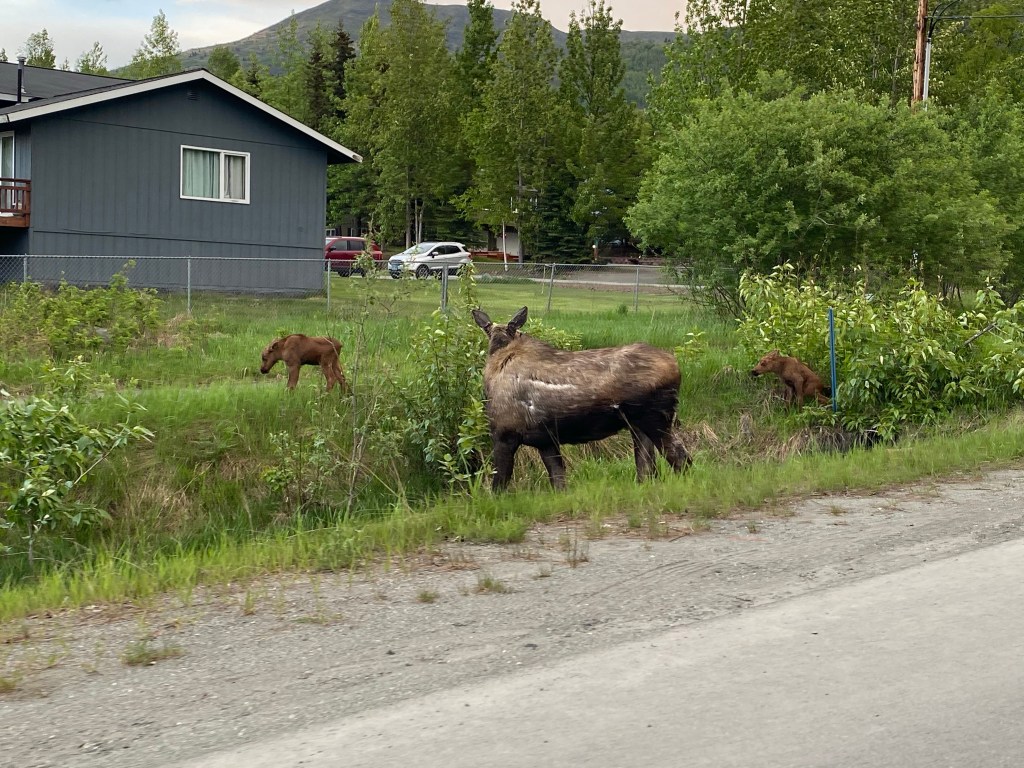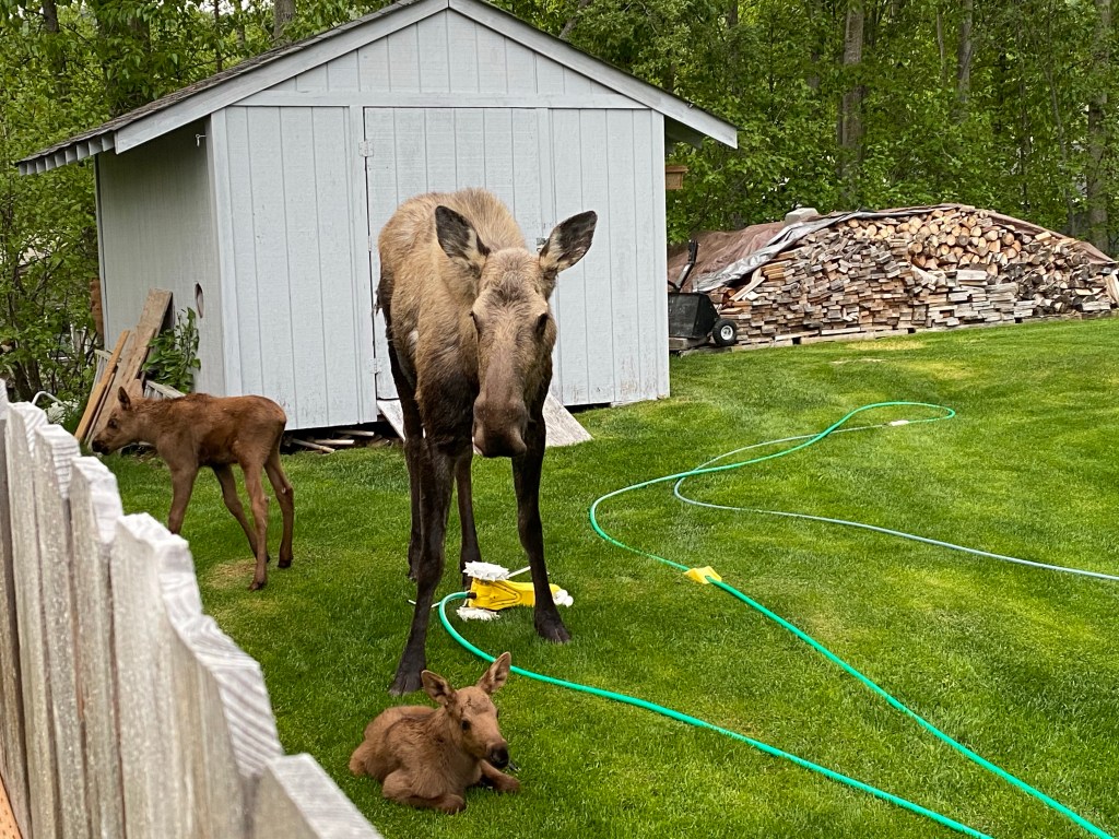 Momma moose and her twins in our neighbors backyard recently. We have fallen in love with the area we live in…. partially because of all of the wild life we get to see 🙂 We’ve seen moose, a black bear and even a brown bear!