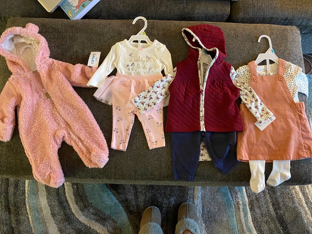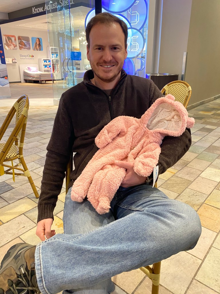 As soon as we found out last Sunday we headed straight to the mall and I had Ben pick out his first outfit for baby all on his own. I didn’t say a word. One outfit turned in to four — he liked them all! The onesie with the hoodie is the very first one he picked out for a newborn followed by 3 month and 6 month. Good job, dad! He’s already winning at being a #girldad 🙂