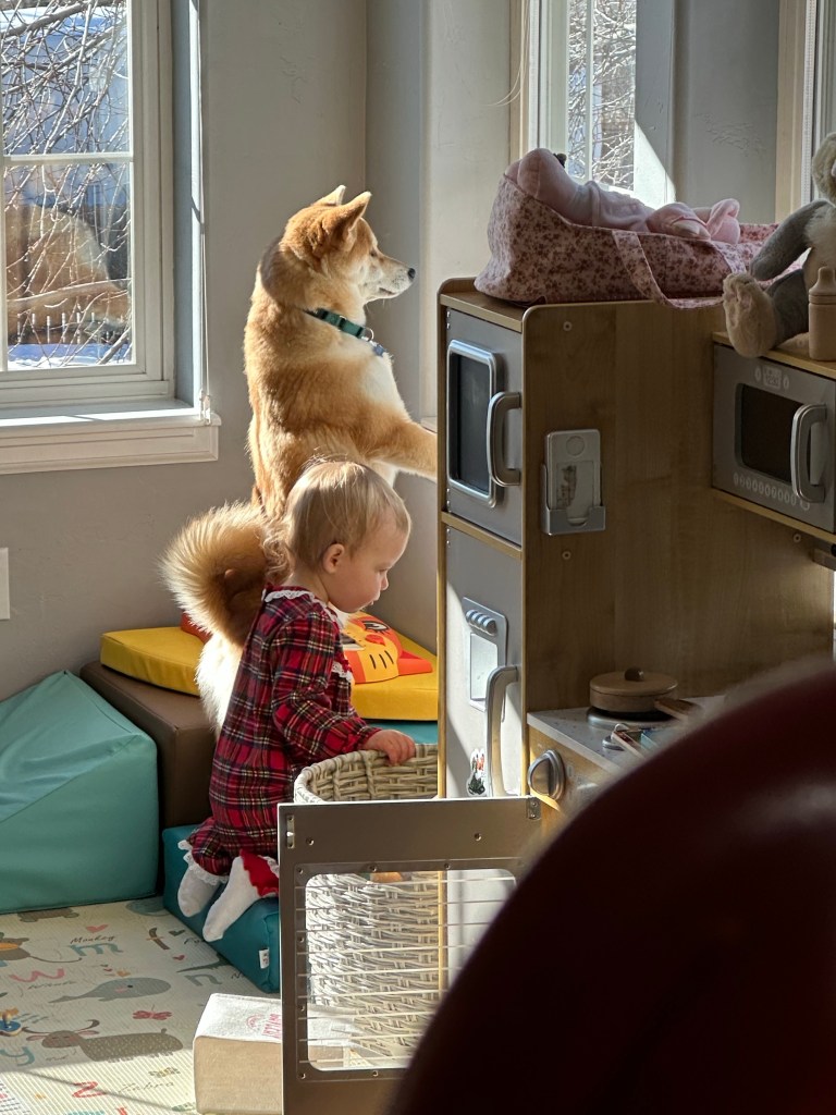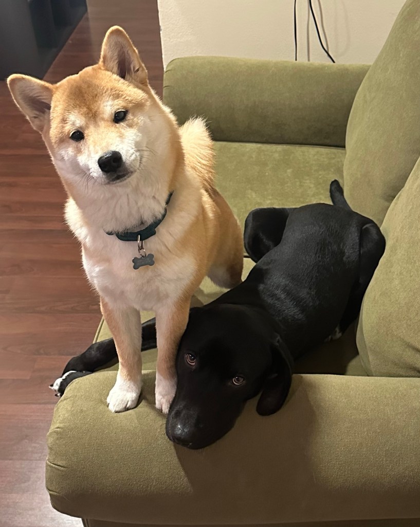 Lilah took him under her wing as soon as they met and she’s loved him and cared for him ever since! Now that he’s older and more Shiba-ish neither of them knows who the dominant one is. But neither seems to want to decide. They get along great, are best friends and its so nice to have two pups. Emery LOVES her dogs. And so do I 🙂