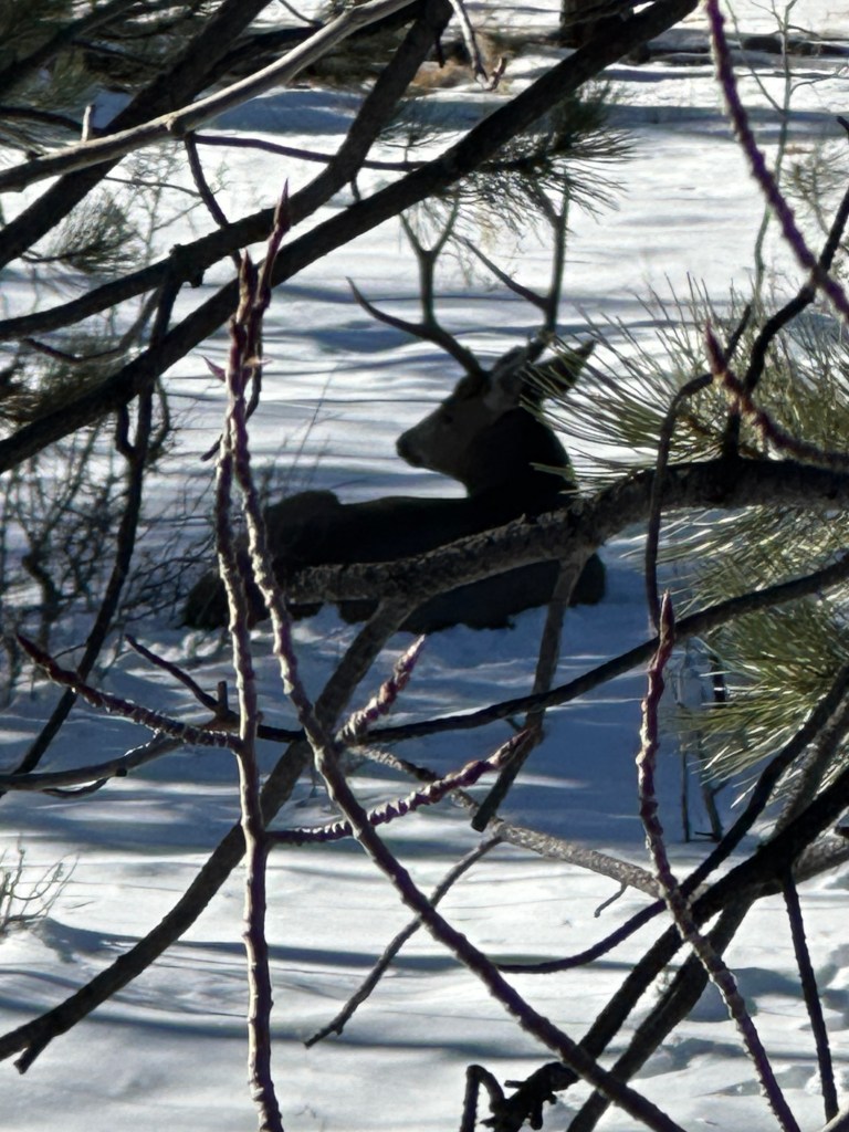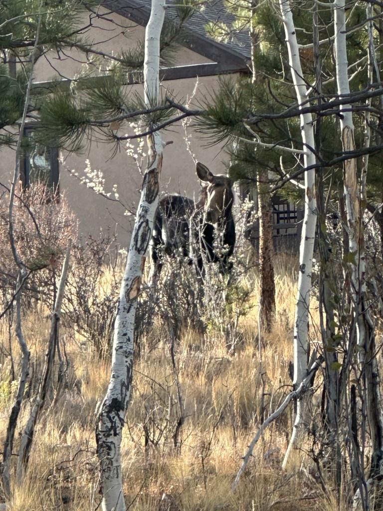 We continue to settle into our mountain home. I love it more every day! We have deer every day, have had moose and elk, mountain lion tracks, rabbits, squirrels, an annoying woodpecker, finches….